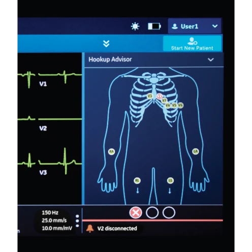 Il sistema Hook-Up Advisor controlla la qualità del collegamento degli elettrodi e segnala artefatti.